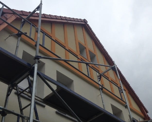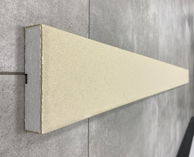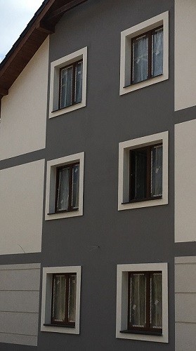 Listwy elewacyjne seria L ze styropianu EPS-200 "Special", pokryte tynkiem zewnętrznym na gładko.